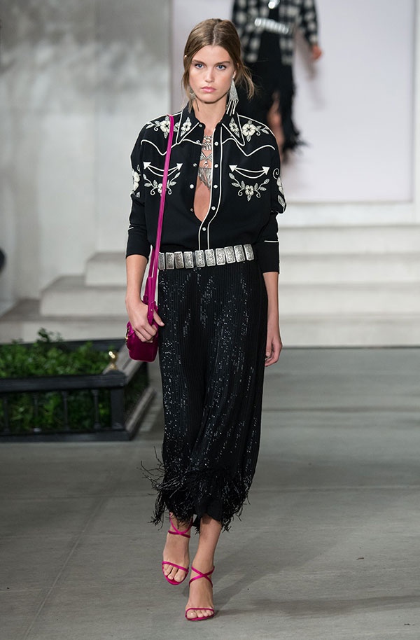 مجموعة مميزة لخريف 2016 سلّط رالف لورن الضوء فيها على ترف تصاميمه التي جمعت بين تلك العملية اليومية وأخرى راقية للسهرات. مجموعة مستوحاة من أميركا الغربية مثيرة للإعجاب بألوانها النابضة بالحياة كالأصفر والأزرق والفوشيا والفساتين المصنوعة من الترتر الصغير اللماع وأخرى لماعة مستوحاة من عراقة الماضي. كما ظهر أسلوب رعاة البقر الذي لطالما ميّز تصاميم لورن فظهر في حلقة من القمصان بنقشة المربعات دُمجت مع أنماط متنوعة و مع الشراريب، وسراويلٌ ميزها التطريز اليدوي. كذلك ظهرعقد التشوكر العريض والقبعة لتكمل إطلالات هذا العرض المترفة بطبيعتها.