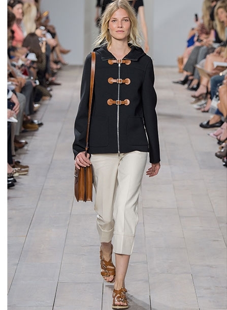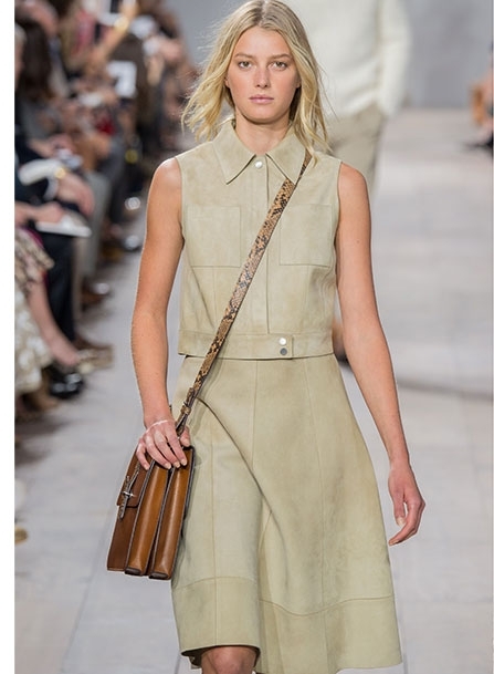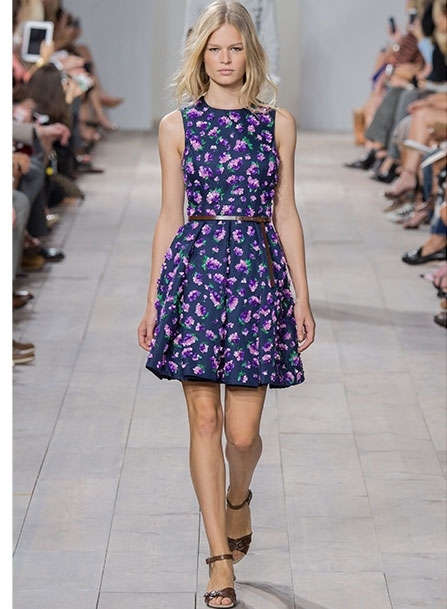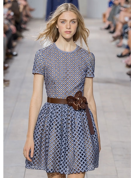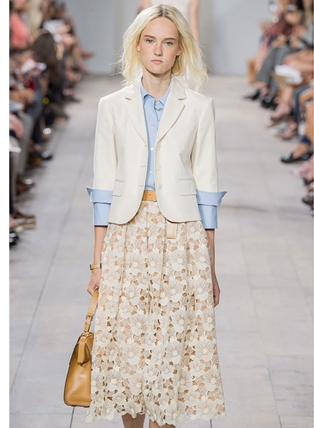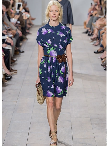 قدم المصمم مايكل كورز مجموعته للصيف المقبل التي استوحاها من الخمسينات. الفساتين فيها أنوثة مع قصات واسعة للتنانير، أحياناً بالمكشاكش، ولكن المرأة ترتديها بأسلوب معاصر، فتختار مثلا تنورة مطرزة مع قميص وبلايزر أو حتى تي شيرت. وتضيف الحزام المزين بوردة كبيرة لتحديد خصرها.