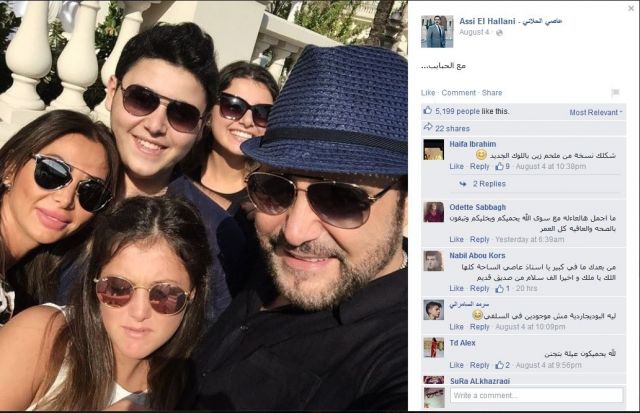 نشر النجم عاصي الحلاني عبر صفحته الرسمية بموقع "فايسبوك"، صوراً تجمعه بزوجته وأبناءه الثلاثة ماريتا ودانا والوليد، أثناء إجازته العائلية في مدينة "كان" الفرنسية.