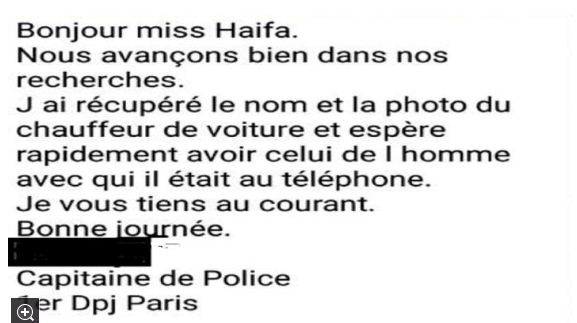 وفي ما يلي جزء من الرسائل الصادرة عن الشرطة الفرنسية والموجهة لهيفا: