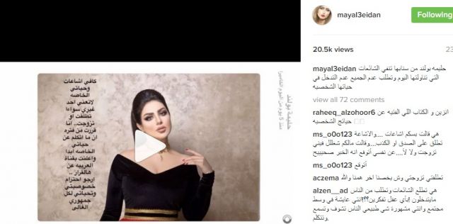 ونشرت العيدان صورة بولند معلقة أن الأخيرة "تنفي من سنابها الشائعات التي تناولتها اليوم وتطلب من الجميع عدم التدخل حياتها الشخصية".