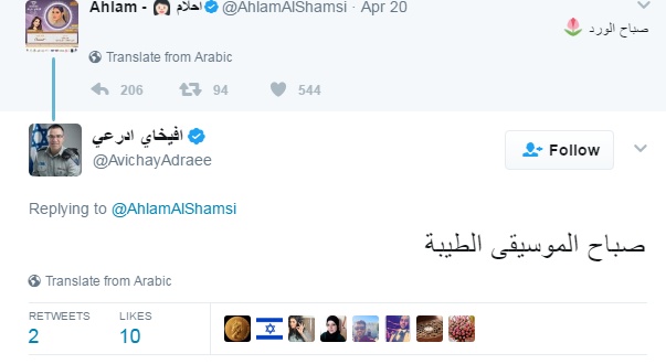 بالصور - الإسرائيلي افيخاي أدرعي يتحرش بأحلام... وهي تختار الرد الأفضل