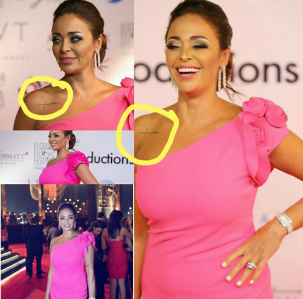 وأثارت النجمة حالة من الجدل عبر مواقع التواصل الاجتماعي المختلفة، بسبب الوشم الغامض الذي ظهرت به على كتفها الأيسر، ليتساءل الجمهور عن الكلمة المكتوبة.