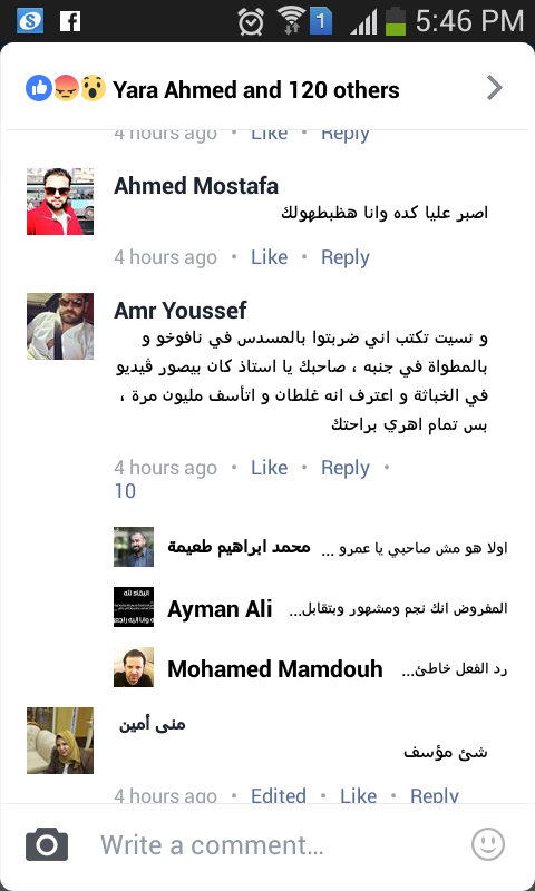وعلى الفور، ردّ يوسف على هذا الاتهام والانتقادات الاي وجهت له، وكتب ساخراُ: "ونسيت تكتب اني ضربته بالمسدس في دماغه وبالمطواة في جنبه .. صاحبك يا استاذ كان بيصور فيديو في الخباثة واتاسف مليون مرة .. بس تمام اهري براحتك".
