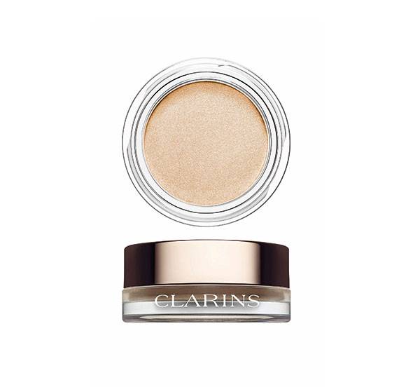 لتجميل العينين، وزّعي الظل العاجي المتقزّح Clarins Ombre Iridescente in Ivory no.09 فوق الجفن المتحرّك وخط الرموش السفلية، وانشري اللون البنفسجي المطفأ Sephora Colorful Eyes Mat in Fresh Paint no.263 عند طيّة الجفن، وضعي لمسة من الظل الماسي المضيء Givenchy Ombre Couture Cream Eyeshadow inTop Coat Blanc Satin no.1 عند زاوية العين الداخلية.