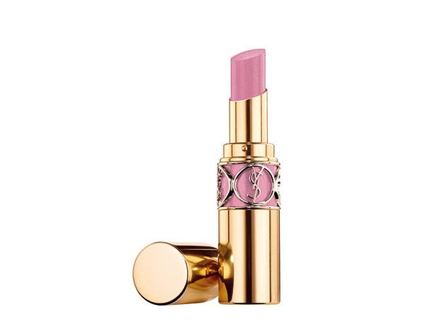 - حدّدي شفتيك باللون الوردي النضر Dior Contour in Premiere no.060، ولوّنيهما بأحمر الشفاه القشدي اللمّاع YSL Rouge Volupte Shine in Turbulent Pink no.62.