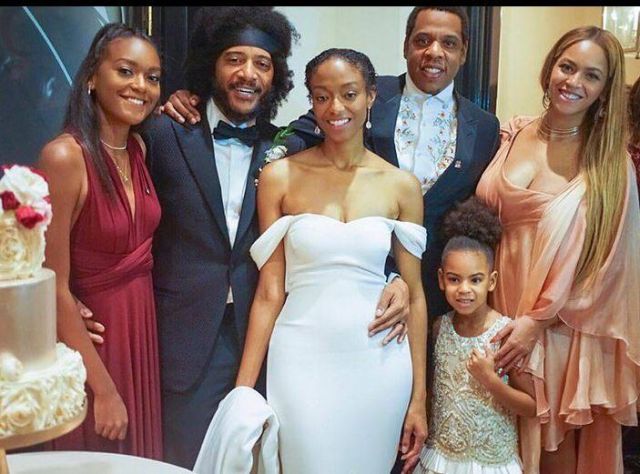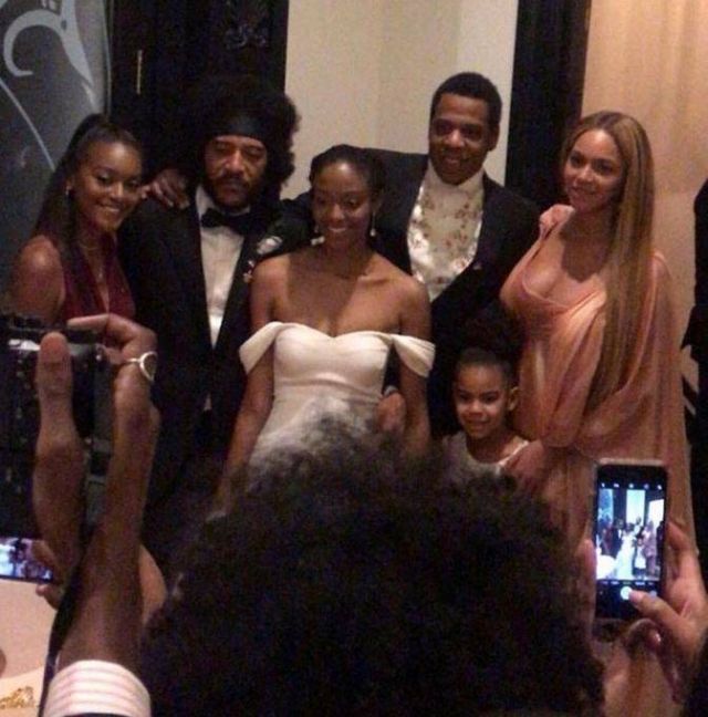 حضرت المغنية العالمية بيونسيه برفقة زوجها مغني الراب جاي زي وابنتهما بلو آيفي، حفل زفاف صديقيهما لورنس باركر ود. جسيكا كليمنز.