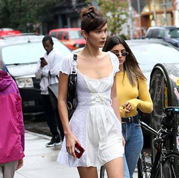 بالصور - بيلا حديد كأميرات "ديزني" في الشارع بفستان أبيض قصير