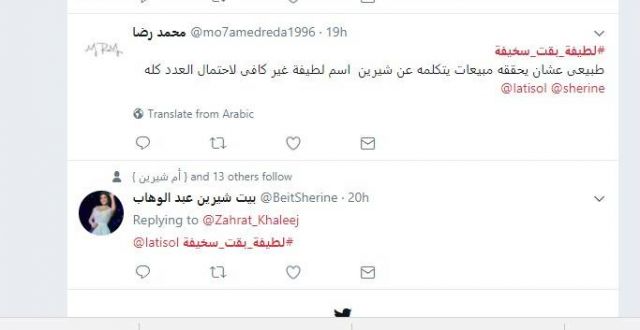ورداً على هذه التصريحات اطلق جمهور شيرين هاشتاغاً بعنوان (#لطيفة_بقت_سخيفة)، وهاجمها عبره، في الوقت الذي لم تقم فيه "شيرين" بالرد.