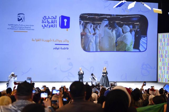 وشهد الحفل، الذي استضافته "أوبرا دبي"، تكريم الشيخ محمد بن راشد آل مكتوم أسرة الطالبة الجزائرية فاطمة غولام (17 عاماً)، شهيدة القراءة كما وصفها، حيث قلّد ذويها ميدالية الشرف. وكانت فاطمة قد تعرضت في شهر نيسان/أبريل الماضي لحادث أليم أودى بحياتها، بينما كانت في الطريق من بلدتها التي تبعد نحو 1800 كيلومتر عن العاصمة الجزائر للمشاركة في التصفيات النهائية من تحدي القراءة العربي على مستوى بلدها، ليتوقف حلمها قبل أن تواصله. وكان الشيخ محمد بن راشد آل مكتوم أول المعزّين بفاطمة، موجّهاً بتجهيز عشر مكتبات تحمل اسم الفقيدة.