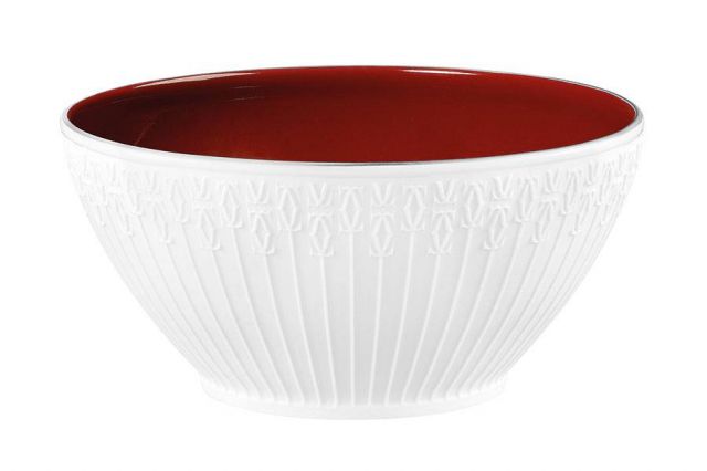 ليس هناك أجمل من أن تزيّني مائدتك بأوعية من البورسيلان خزفيه جميلة. تقدم لك كارتييه ثلاثة أوعية بورسيلان خزفية بيضاء. الوعاء الأول مزيّن بنقش مستوحى من الـ«آرت ديكو»، طُلي القسم الداخلي منه بالمينا الرمادي المائل إلى الداكن.