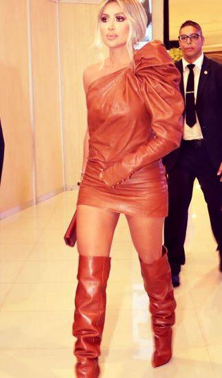 ونشرت دياب مجموعة من الصور على تطبيق "انستغرام"، وأثارت إطلالتها الغريبة ضجة كبيرة بين متابعيها، حيث ظهرت بفستان قصير مصنوع من الجلد، باللون "الهافان" مع قصة مميزة عند الكتف، وأكملت اطلالتها بحذاء طويل وحقيبة بشكل هندسي مصنوعة من نفس خامة ولون الفستان.