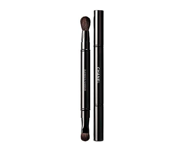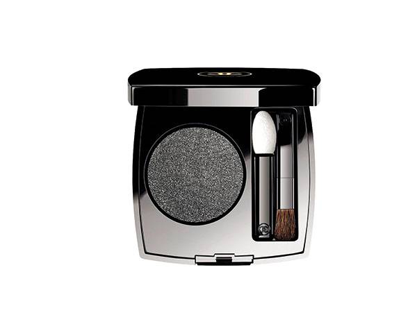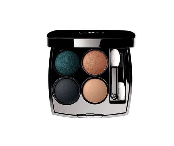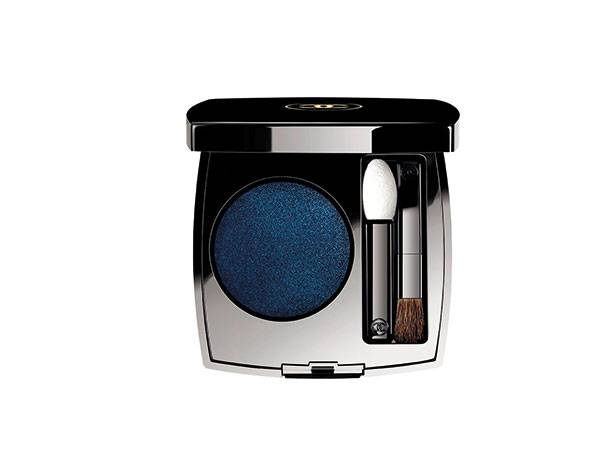 بواسطة فرشاة تجميل العينين Retractable Dual-Tip Eyeshadow Brush وزّعي مزيجًا من الظل الأزرق الفاتح Ombre Premiere Longwear Powder Eyeshadow in Blue Jean no.16 والداكن inUrban no.818 فوق كامل الجفن الأعلى، والظل الأخضر البترولي من علبة الظلال الرباعية الألوان Les 4 Ombres in Road Movie no.288 عند خط الرموش السفلية، ومدّي اللون خارج حدود العين بقليل. ثمّ، ارسمي جذور الرموش السفلية باللون الفضي الوامض Ombre Premiere Longwear Powder Eyeshadow in Gris Anthracite no.40. بعدها، حدّدي خط الرموش العليا بالكحل القشدي الأسود CALLIGRAPHIE CHANEL in Hyperblack، وغلّفي رموشك بالماسكارا الزرقاء Le Volume de Chanel in Blue Night no.70.
