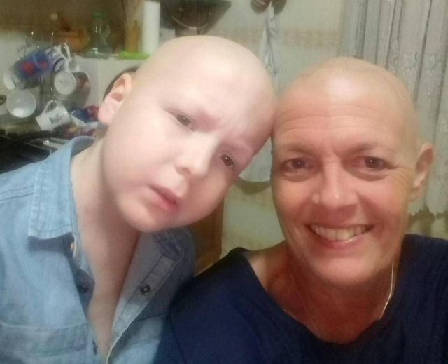 بالصور- أم وابنها يصابان بالسرطان في وقت واحد... شاهدوهما من دون شعر ويضحكان رغم المأساة