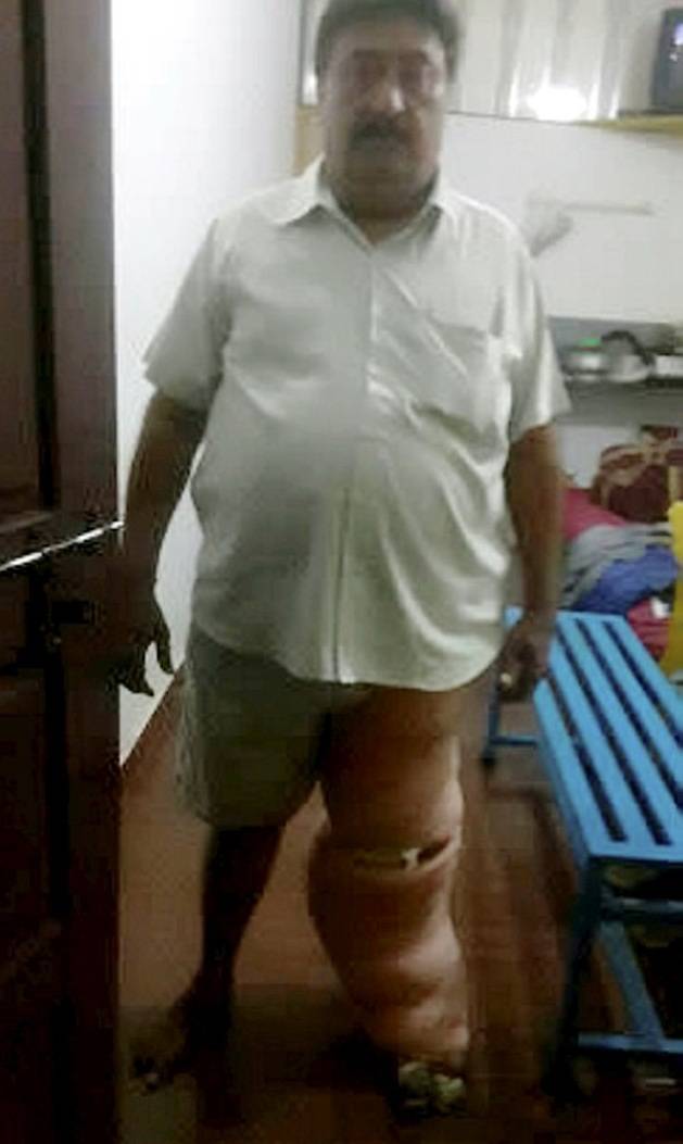 وذكر موقع صحيفة "دايلي ميل" البريطانية ان تشيتان بيثاديا (53 عاماً) لاحظ أن حجم ساقه اليسرى بدأ بالإزدياد قبل أربع سنوات، وظن ان الامر موقت، قبل خضوعه طوال هذه الفترة لعلاجات لم تساعد على تخطي ازمة "التهاب الأفيال" الذي تسببه الديدان الحلقية الطفيلية التي يحملها البعوض وتدخل الجسم عندما يضرب الضحايا.
