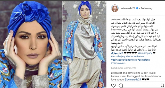 ونشرت زينة صورة لأمل حجازي بالحجاب عبر صفحتها على "إنستغرام"، وعلقت عليها قائلة: "طول الوقت وأنا بحب الست دي، ماعرفش إيه سبب الحب ده. ومش إعجاب بفنها، لا، حب لشخصيتها مع أني ما اعرفهاش خالص، بس بشوف لقاءات".