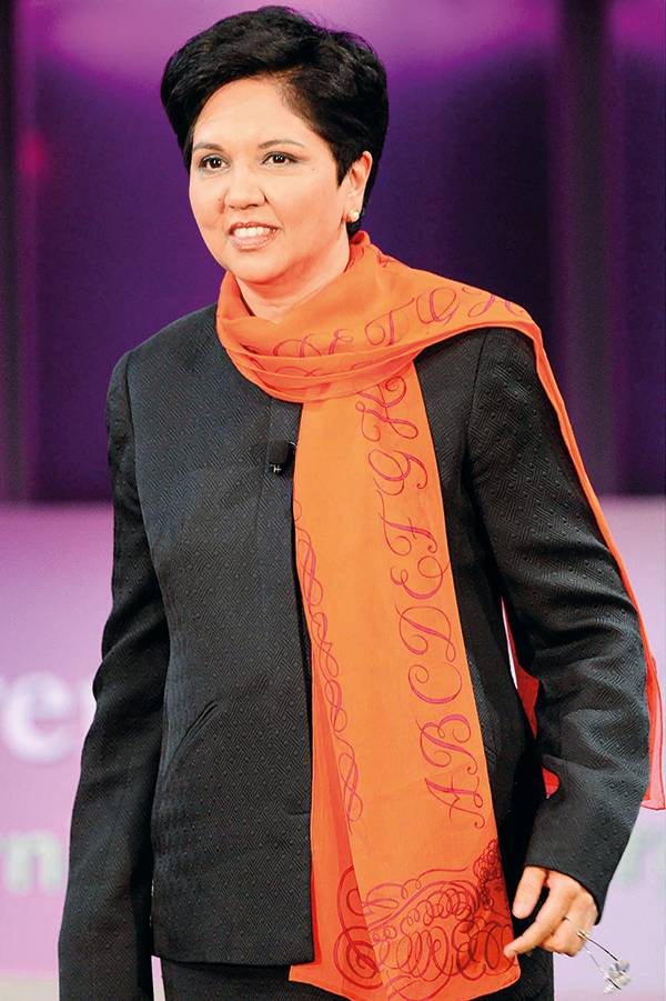 إندرا نويي، 61 عاماً، هي رئيسة شركة PepsiCo والمديرة العامة التنفيذية لها منذ العام 2006. أشرفت نويي على الاستراتيجية العالمية للشركة لأكثر من عقد من الزمن ونجحت في إعادة قولبتها. كما قادت عملية شراء ماركات عدة، مثل تروبيكانا، والاندماج مع شركات أخرى مثل Quaker Oats.