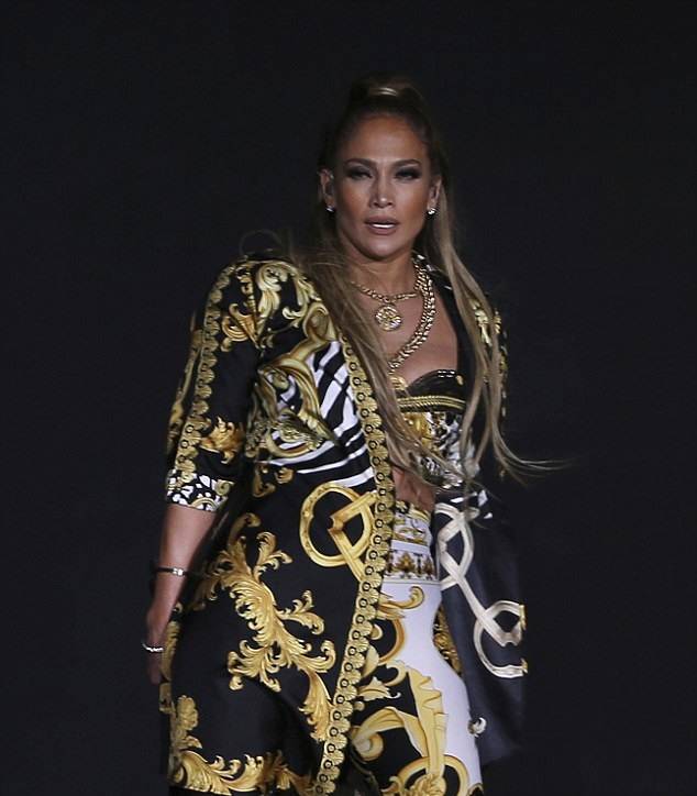 وخطفت جي لو الانظار باطلالة مميزة، حيث اختارت من Versace "توب برا" وسروال بقصة لاصقة، مع جاكيت طويلة من اللون نفسها، وبدت ساحرة الجمال مع رفع سعرها بالتسريحة المفضلة لديها.