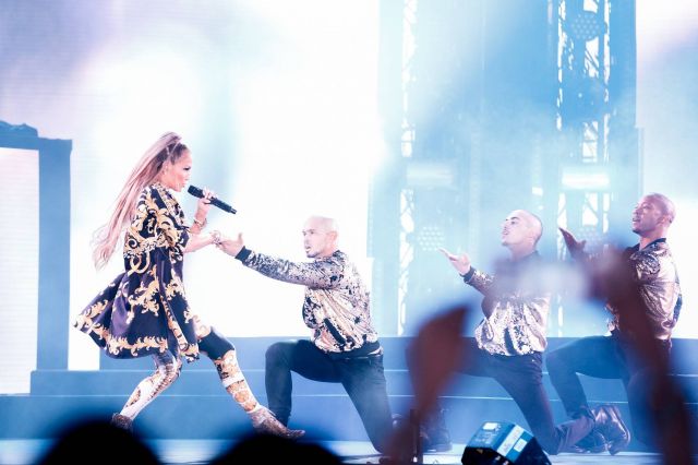 امام أكثر من 3500 من الشخصيات الهامة والجمهور قدمت النجمة العالمية جينيفر لوبيز حفلاً غنائياً مميزاً في "حفل معرض دبي للطيران" الذي استضافته مطارات دبي وطيران الإمارات والسوق الحرة بمطار دبي الدولي، في فندق "أتلانتس النخلة".