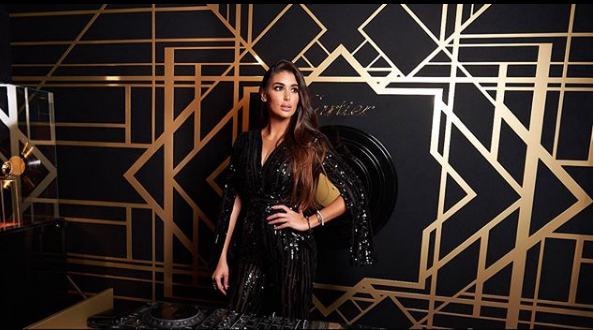 وارتدت الممثلة الحسناء في احدى المناسبات في دبي، والتي نشرت صورها عبر حسابها الرسمي على تطبيق "انستغرام"، "جمبسوت" اسود شفافاً، مفصلاً بقصات هندسية مع الترتر الأسود والشراشب المطرّزة.