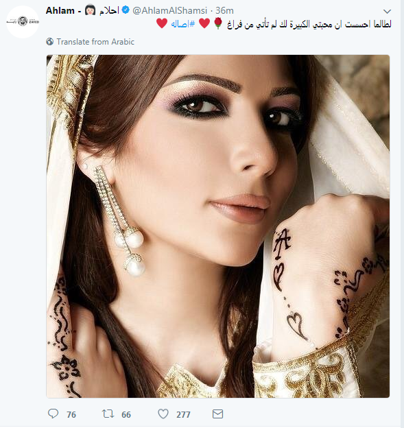 ردّت الفنانة الإماراتية أحلام على اعتذار الفنانة السورية أصالة نصري منها، ناشرةً صورة الأخيرة عبر حسابها على موقع "تويتر".