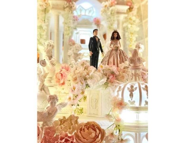 وتم تصميم كعكة فريدة من نوعها على شكل قلعة مصنوعة بالكامل من السكر، وتم تزويدها بأبراج، وتزيينها بالكرز والزهور، وداخل الكعكة نفسها تقف قلعة معقدة مصنوعة بالكامل من السكر، كاملة مع الأبراج والمعابد، والزهور والخنادق.