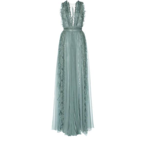 - أما الإطلالة الثالثة، فهي من المجموعة نفسها، ولكن بأسلوب أنثوي ومرهف أكثر، حيث تألقت بفستان باللون الأخضر الباستيل، تميز بطياته الناعمة، ويبلغ ثمنه نحو 4,349 دولاراً أميركياً.