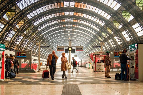 قد تكون محطة القطار المركزية في ميلانو إحدى أكثر محطات القطار أناقة في العالم، على رغم كونها قديمة جداً. فهي تمتاز بجمال زخارفها وتصاميمها، إضافة إلى المحال التجارية الموجودة فيها والسلالم المتحركة السريعة. تأسست هذه المحطة في ميلانو عام 1931، ولا تزال نقطة جذب أساسية للسيّاح.