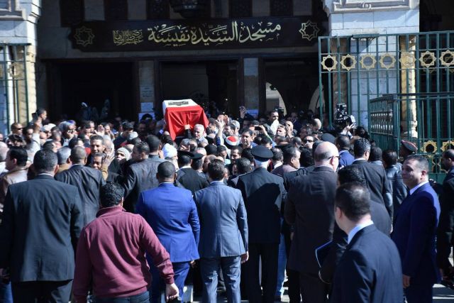 ووسط إجراءات أمنية مشددة، وصلت السيدة انتصار السيسي، حرم الرئيس المصري، إلى المسجد للمشاركة في صلاة الجنازة وتشييعها إلى مثواها الأخير. وكانت في وقت سابق حرصت على زيارتها مع الرئيس عبد الفتاح السيسي في المستشفى.