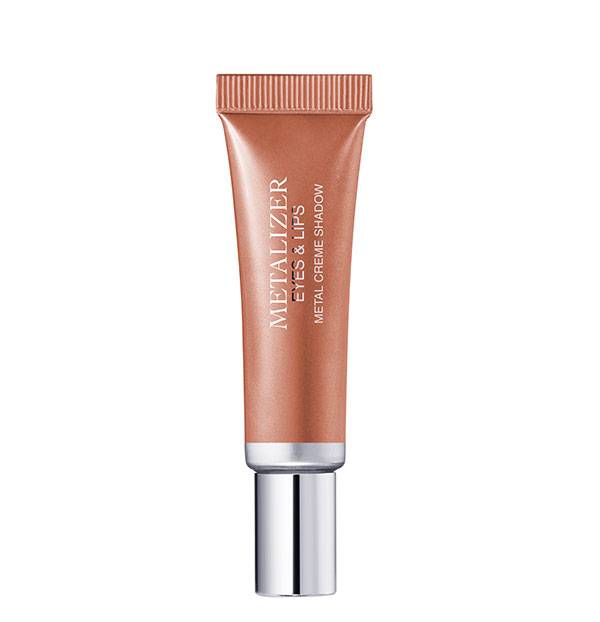 حدّدي جذور الرموش العليا بالكحل المائي الأسود Chanel Ecriture de Chanel Eyeliner Pen Effortless Definition، وضعي لمسة من الظل البرونزي الفاتح Dior Metalizer Eyes & Lips Metal Cream Shadow in Copper Power no.548 فوق خط الكحل.