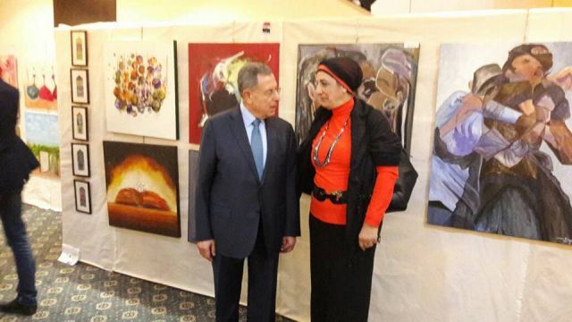 وتتحدث الفنانة أسيمة دمشقية، المشاركة والمنظمة للمعرض الفني، عن المعرض واللوحات، وتقول:" هذا المعرض بات عرفاً مرافقاً لمعرض الكتاب. واللوحات المعروضة فيه هي أشبه بترجمة أو ظلال الكتاب بما يوحي من ثقافة وجمال وتعابير جمة. ولكل فنان وفنانة لغة لونية خاصة وأشكال تعبيرية مختلفة. أما لوحتي فإنني أستنبطها من الواقع الثقافي المعيوش، وتسعى ألوان لوحتي الى مقاربة الواقع بما يحوي من أشياء وأفكار وطموح".