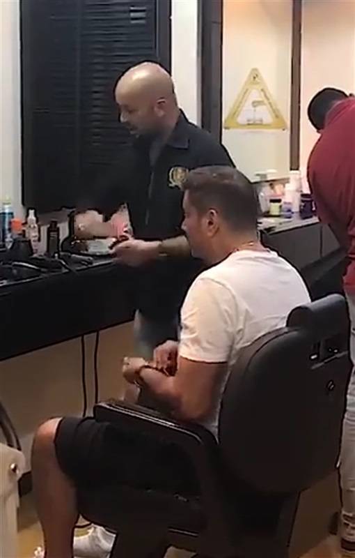وأشارت الصفحة إلى أن الصور التقطت خلال إحدى زياراته لمدينة دبي في الإمارات. وقد بدا فيها النجم بإطلالة طبيعية جداً، فيما كان المزيّن يقوم بالاهتمام بتسريحته.