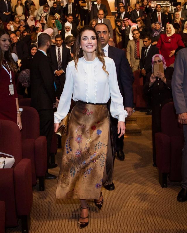 أولاً، يمكنك اعتماد القميص الأبيض مع التنانير المطبّعة والملونة، وهذا أسلوب ظهرت به الملكة في العديد من المناسبات، حيث اعتمدت القميص عينه ونسّقته مع عدّة تنانير مزركشة ومختلفة.