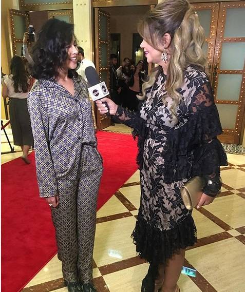 وظهرت ياسمين، خلال حضورها العرض الأول من فيلمها "بلاش تبوسني"، بلوك "البيجاما".