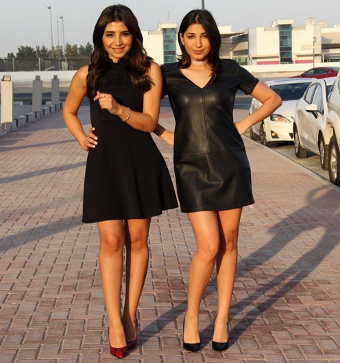 وأطلّت الشقيقتان بفستانين قصيرين باللون الأسود، فاختارت الأولى الجلد والأكمام، وحذاء بالكعب العالي واللون الأحمر، بينما اطلت شقيقتها باللون الأسود الكامل.