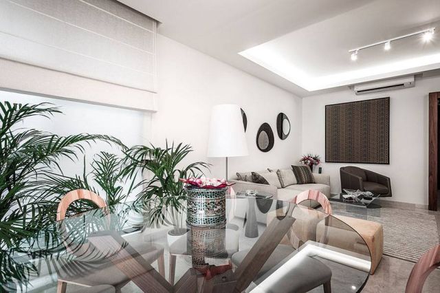 هذه الشقة في وسط بيروت أرادها مالكوها أنيقة وعصرية وفرحة. فالمالكون الذين انتقلوا إلى هذا المسكن أرادوه أكبر حجماً مما هو عليه، خصوصاً أنهم ينتقلون للعيش في مكان أصغر مساحةً من الذي كانوا يقطنونه سابقاً، وشاؤوا أن يحافظوا على الهدوء وكلاسيكية الألوان، ولكن في قالب فرح. ومن هنا انطلق عمل المهندسة لمراعاة كلّ متطلبات المالكين وتنسيقها بحسّها الفني.
