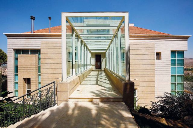 هنا، الشفافية والسعة هما العنوان الأبرز لتنفيذ الهندسة التي عكست جمالاً على جمال، طبيعة خلاّبة وتحفة هندسية. أعمدة شاهقة من الحجر كأعمدة بعلبك شكلت الركيزة لهذا الصرح الضخم عند باب الاستقبال، وخلفها الواجهة العملاقة من الزجاج امتدت من الأرض حتى الطبقة الثانية.