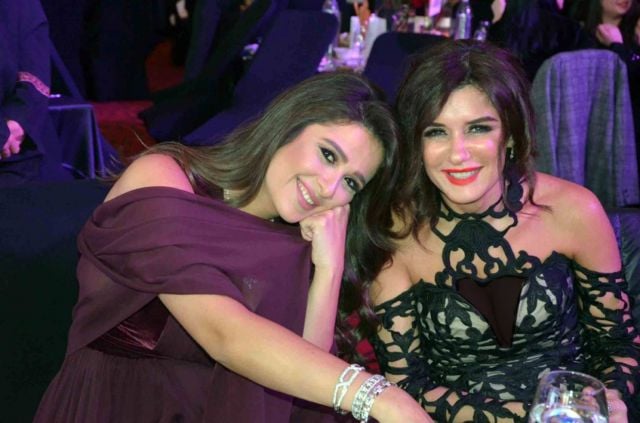 مي عمر وريم سامي تخطفان الأنظار ببريق معدني على...