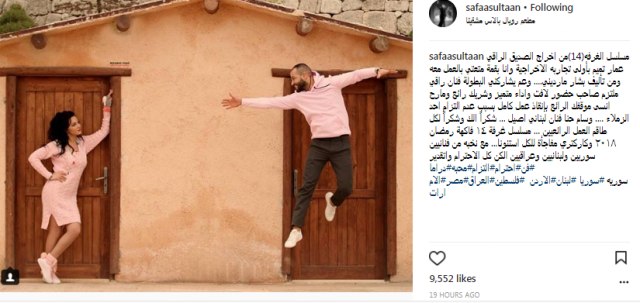 وجاء في في منشور لسلطان عبر حسابها على تطبيق "انستغرام": "عم يشاركني البطولة فنان راقي ملتزم صاحب حضور لافت واداء متميز وشريك رائع"، في إشارة الى حنّا.