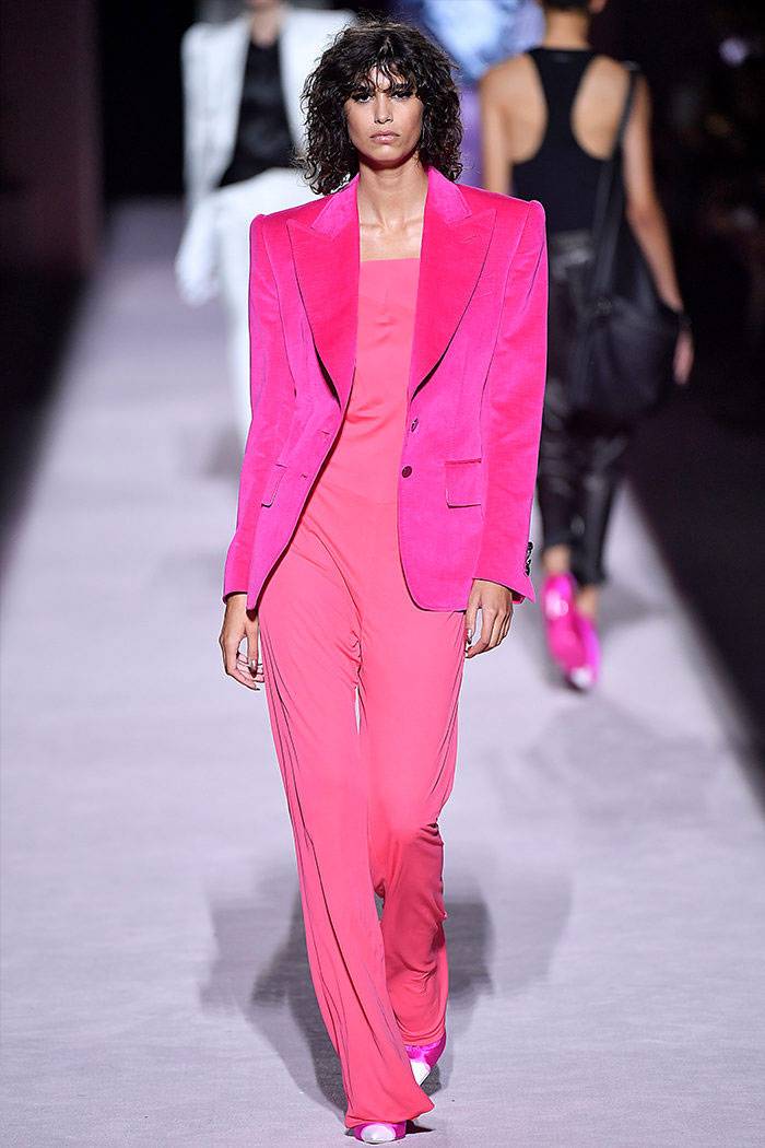 شهدت منصات ربيع وصيف 2017 حضوراً قوياً للون الفوشيا الذي ظهر بعدة طرق لافتة. فلفتنا تنسيق تدرّجات اللون الفوشيا في عرض توم فورد Tom Ford خاصةً تلك المبهرة المؤلفة من سترة بالقصة الكلاسيكية مع الرداء السروالي. كذلك اعتمدت بعض دور الأزياء إطلالات الفوشيا المدموجة مع ألوان قوية أخرى كالأصفر والأحمر في عرض روكساندا Roksanda. أما لمحبّات الجرأة والغرابة فعرض سان لوران تخللته إطلالات بهذا اللون أتت كناية عن توبات بقصّة الأكتاف المكشوفة والأكمام المنتفخة.