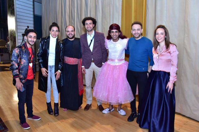 وانتابت"مصطفى قمر" حالة من الضحك الهستيري بسبب زي حمدي الميرغني؛ وقام الجميع بالتقاط الصور التذكارية .