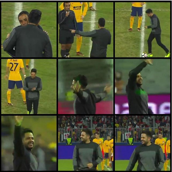 وكيف تبادل السلام مع حكم المباراة وقام بركل الكرة، ليغادر بعدها فوراً الملعب وسط تصفيق الجمهور. أثار هذا الامر ضجة كبيرة بين الجمهور وانقسمت التعليقات بين من اعتبر ان الامر لا يستحق هذه الضجة لا سيما وانه لم يبق في الملعب لاكثر من دقيقة، بينما البعض الآخر أثنى على مشاركته الطريفة.