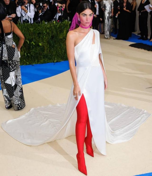 صيحة فريدة من نوعها تبارت عليها النجمات في حفل Met Gala، حيث أطلت النجمة سلمى حايك بفستان أسود بسيط مع ربطة على الخصر. وانتعلت سلمى الحذاء المطاطي الشهير على شكل سروال من Balenciaga باللون النيلي يبلغ ثمنه 1,350$، فيما تألقت عارضة الأزياء ليلي ألدريج بإطلالة مشابهة بفستان بسيط من كارولينا هيريرا ونسقته مع الجزمة نفسها من Balenciaga باللون الأحمر. اما النجمة مايا دياب فاختارته باللون البنفسجي بإطلالة عصرية وجريئة!