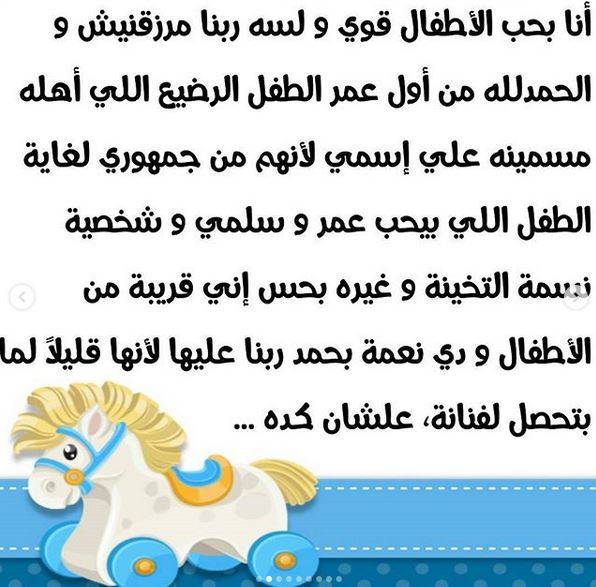 وأضافت: "اللي عايز يبعت صورة طفله او طفلته ينشرها على الهاشتاغ... وحتكون صورة واحدة كل شهر".
