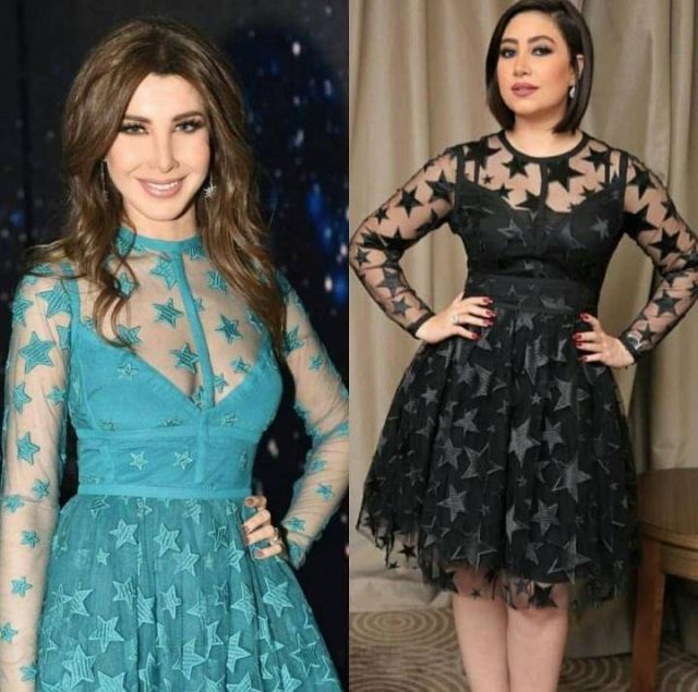 إلّا أنّ زميلتها اللبنانية نانسي عجرم كانت قد ارتدت الفستان نفسه، لكن باللون الأزرق الفاتح، ضمن إطلالتها في إحدى حلقات "Arab Idol" في فبراير (شباط) عام 2017 الماضي.