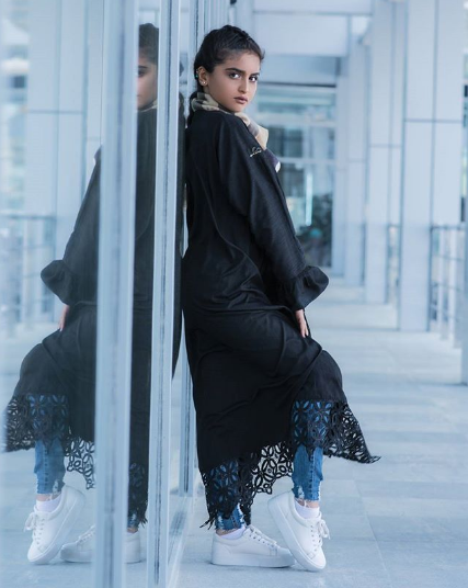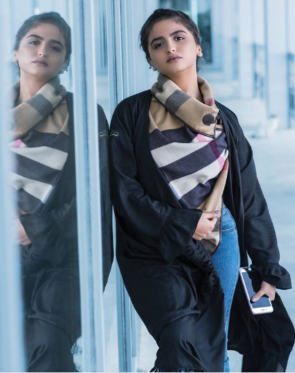 وأطلت حلا في الصورة الأولى بطريقة الـ"سيلفي"، بعفوية مع شهاب، بينما ظهرت في الصور الأخرى شابة تضج بالأنوثة، مرتدية بنطال جينز تحت العباءة الخليجية التقليدية.