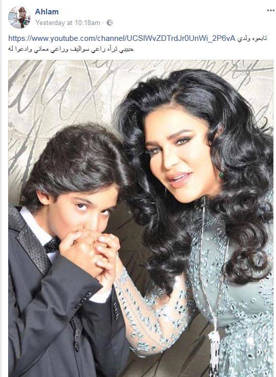 ونشرت أحلام عبر موقع "فايسبوك" صورة تجمعها بابنها فاهد، في محاولة لدعمه في خطوته الجديدة عبر فتحه قناة على "يوتيوب" ينشر فيها مقاطع فيديو متنوعة عن حياته اليومية.