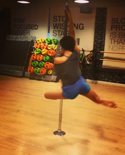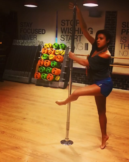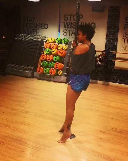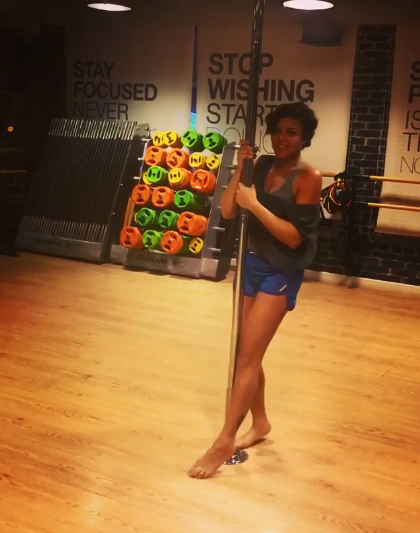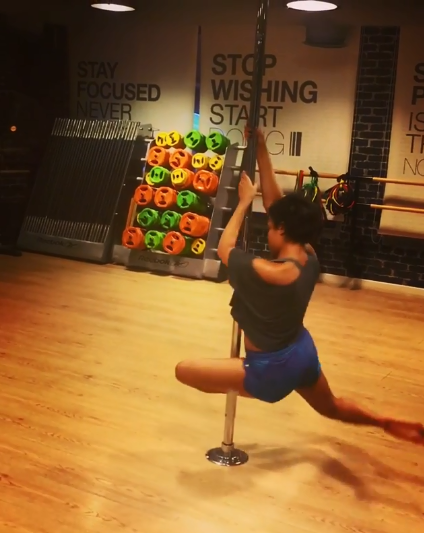 وشاركت السباعي جمهورها مقطع فيديو من داخل النادي الرياضي، خلال ادائها تمرين الدوران حول العمود.