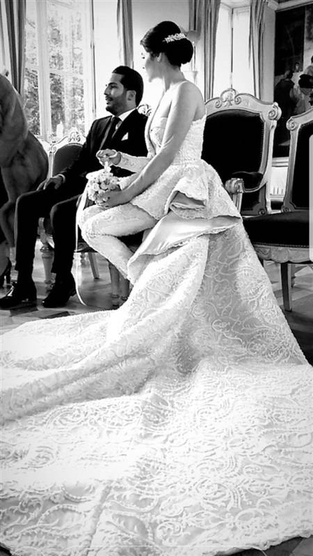 تداول مستخدمون لشبكات التواصل الاجتماعي، صورة للفنانة التونسية مرام بن عزيزة، أثارت الجدل بسبب فستان زفافها.