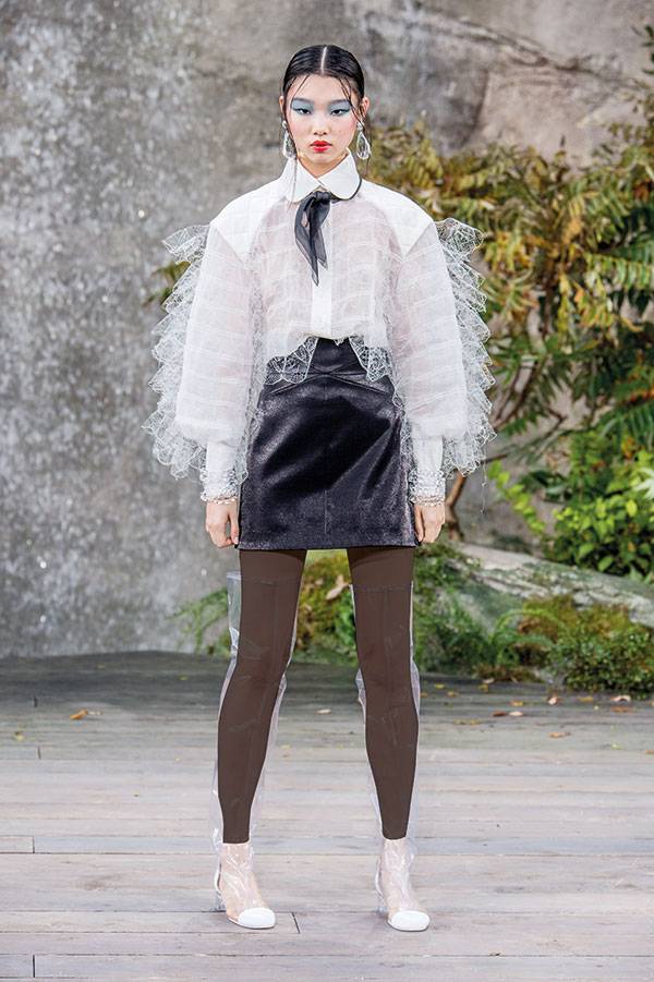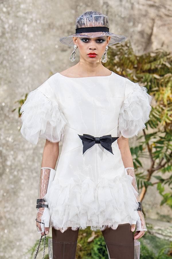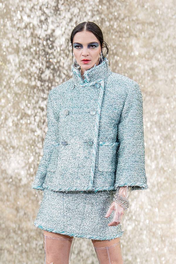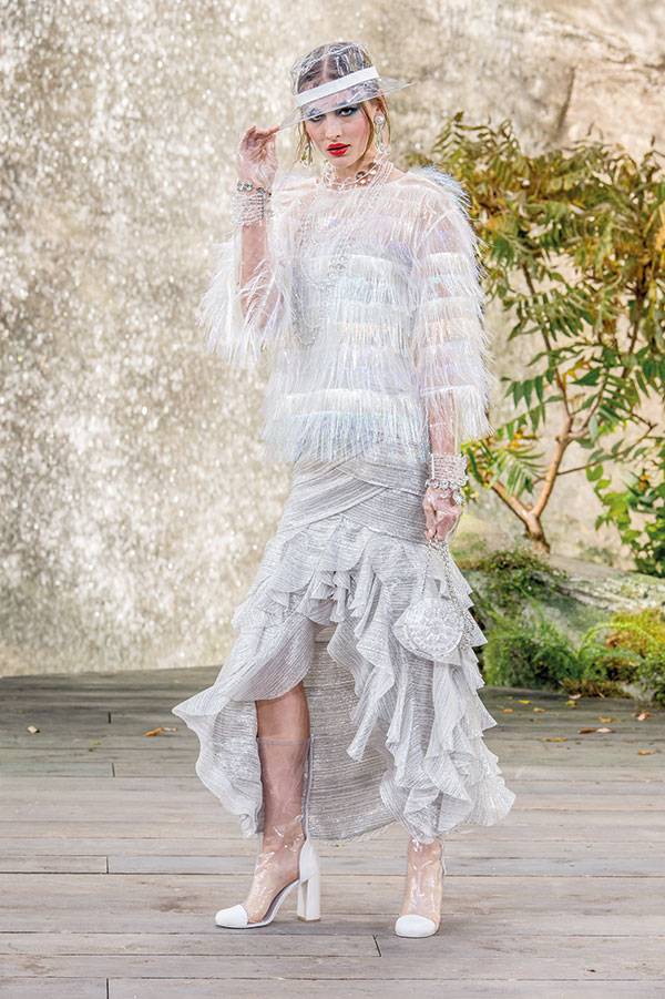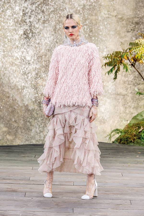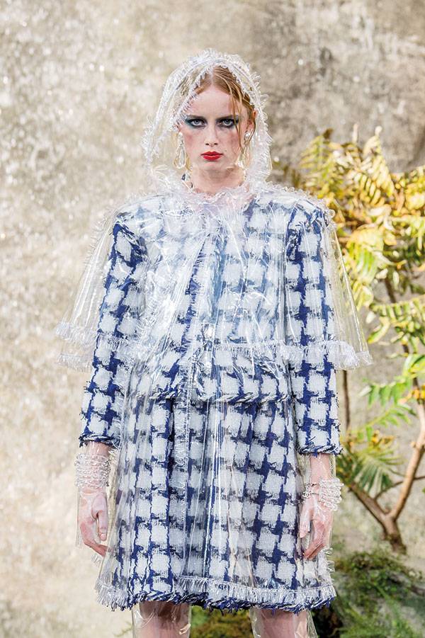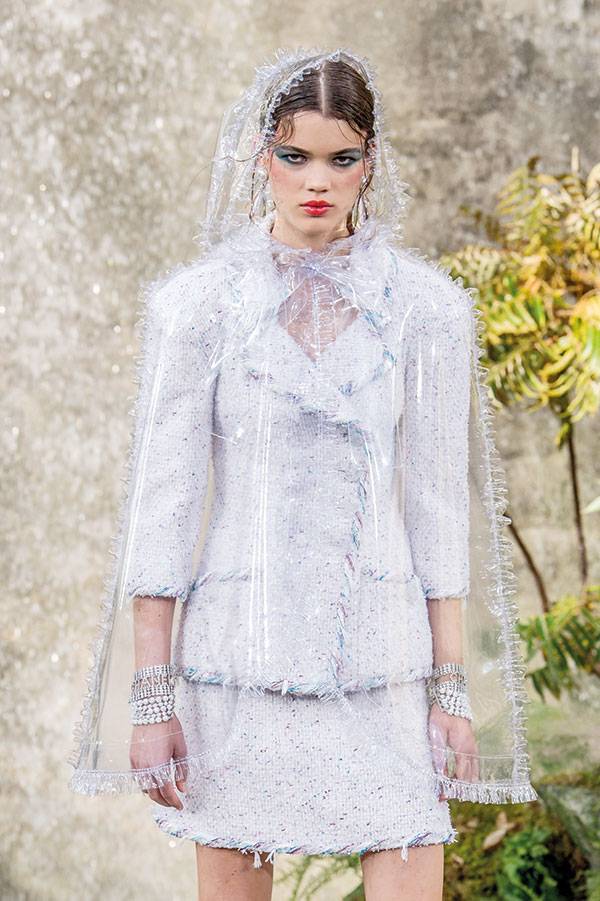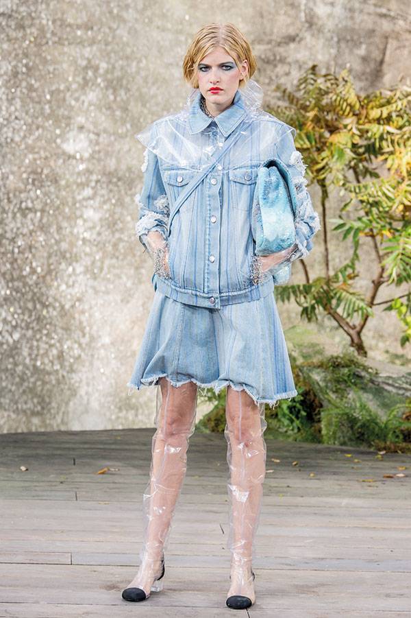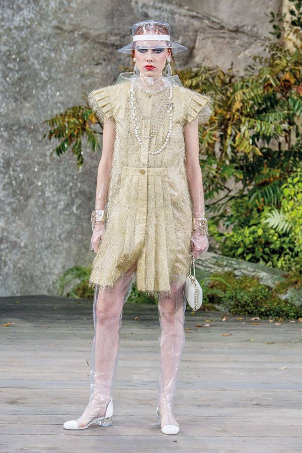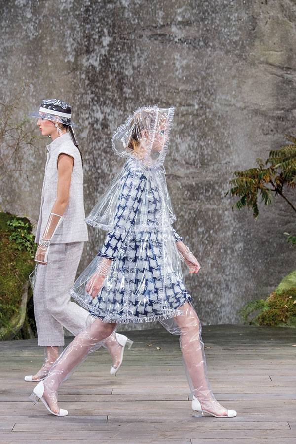 نجحت دار شانيل في إقامة توازن لافت بين الطبيعي والتقني في المجموعة الجديدة. تم تركيب منصة العرض بين المنحدرات الشاهقة والشلالات المتدفقة بين غورج دو فيردون والغران باليه، مع خلفية مذهلة لجنوب فرنسا. امتازت التصاميم بأناقة طبيعية فيما اختالت العارضات بجزمات نايلون عالية حتى الفخذ. ألقى نور الشمس بضوئه الدافئ على المكان، فيما تلألأ رذاذ الماء على معاطف النايلون الشفافة، وتصاميم التويد، وخيوط اللوركس ومجوهرات الكريستال. قال البعض إن المجموعة الجديدة فيها شيء من أجواء الستينيات، لكن كارل لاغرفيلد له رأي مختلف. «لم تكن حقبة الستينيات هكذا على الإطلاق! فالأقمشة كانت مريعة في تلك الحقبة. أما الأقمشة المستخدمة هنا فلا يمكن إيجادها في أي مكان آخر».